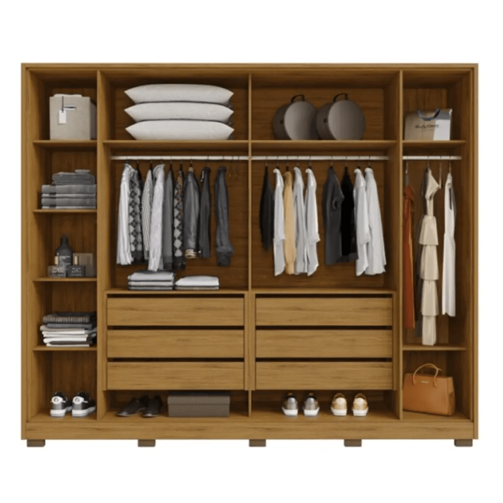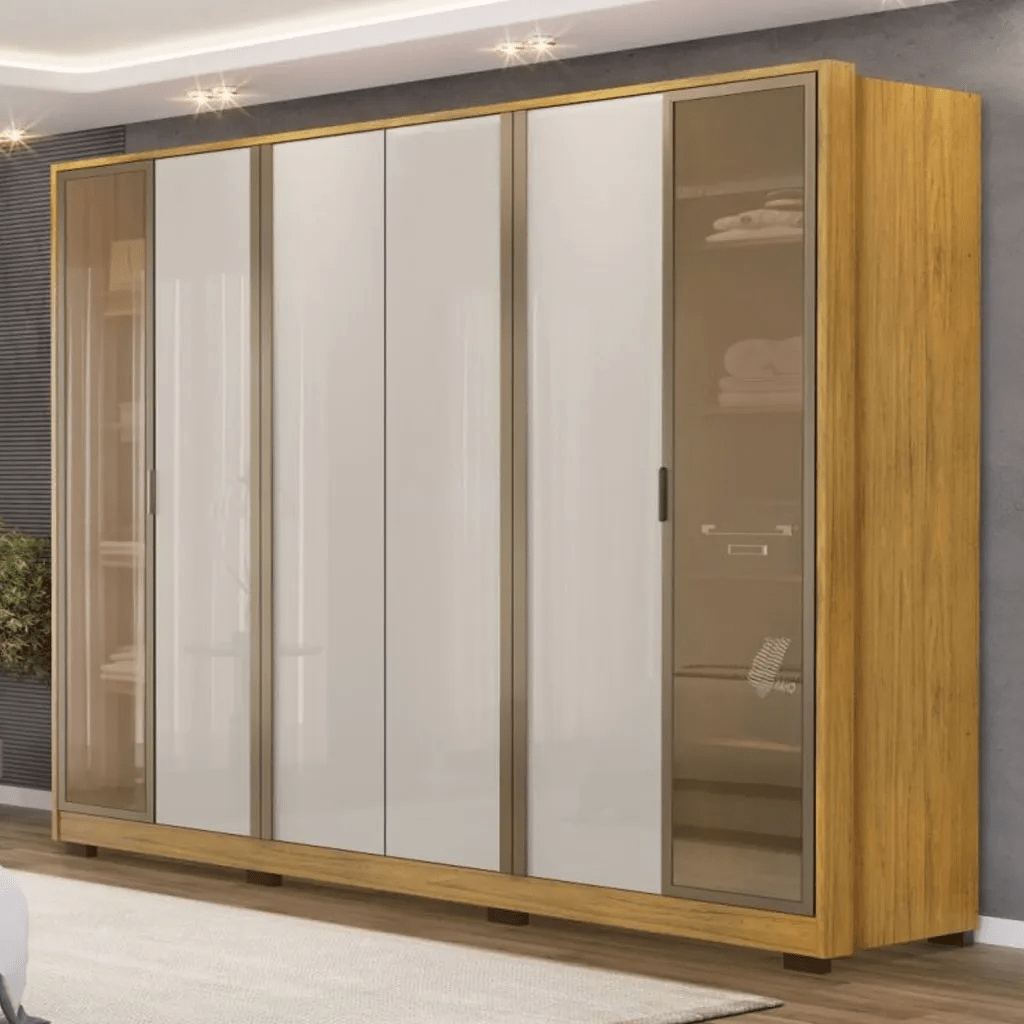 O Guarda-Roupa Ibiza é um produto espaçoso pensado para o armazenamento de uma maneira funcional e prática, para isto ele conta com 6 Portas com Dobradiça de amortecimento.