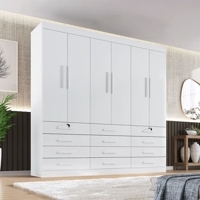 Guarda Roupa Casal MDF 6 Portas 12 Gavetas Marselha Plus
