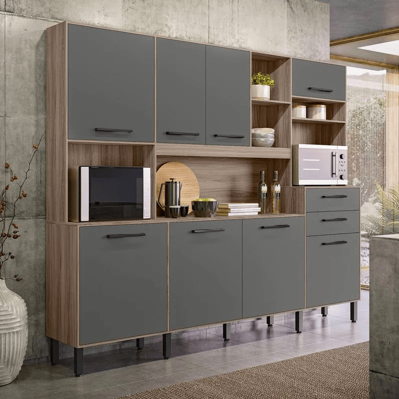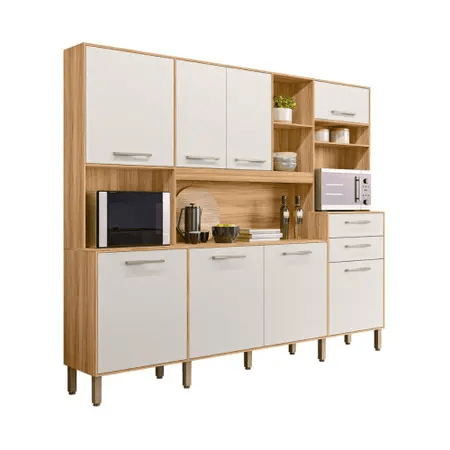 A Cozinha Emily é a escolha perfeita para quem busca elegância, funcionalidade e um espaço amplo para inovação na sua cozinha. Com 6 portas, 1 gaveta ampla e detalhes pensados para otimização do espaço, este conjunto apresenta uma estrutura robusta de 12 a 15mm, garantindo durabilidade. Os puxadores em MDF adicionam um toque refinado, e o espaço dedicado para micro-ondas proporciona praticidade adicional. A pintura em UV confere elegância e resistência ao conjunto.